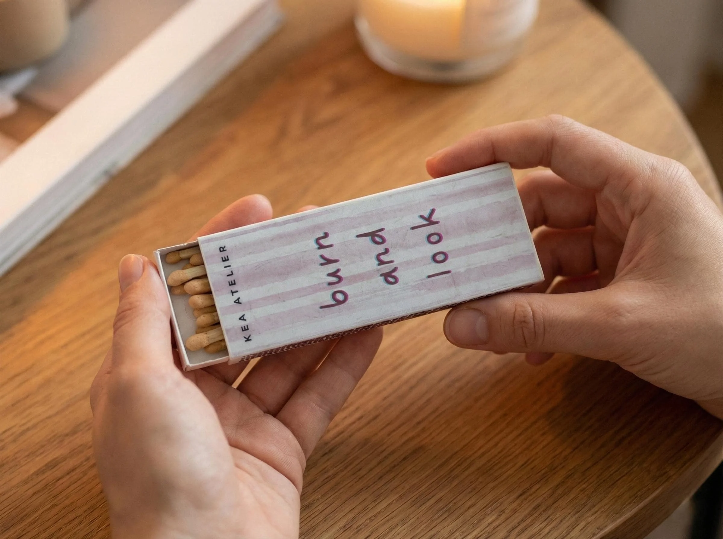 Burn And Look By Kea Atelier Long Matchbox - 4.3'' Art Matchbox - Wooden Matchsticks